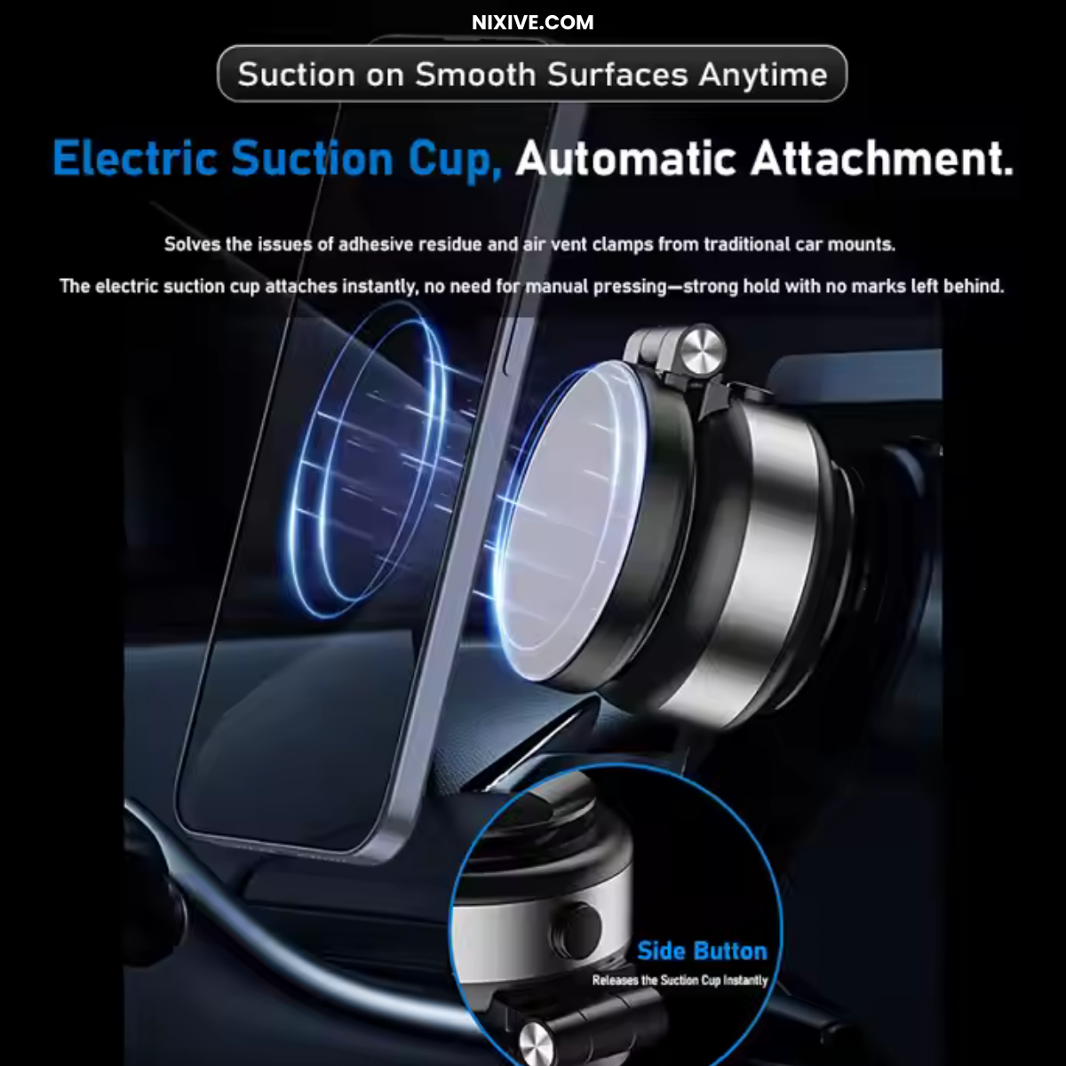 Just press the vacuum suction base onto any smooth surface, and it locks in place instantly.